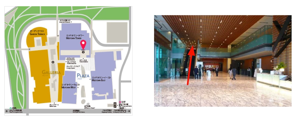 ミッドタウン‧タワー1階エスカレーターより2階ワークスタイリング専⽤受付までお越しください。
