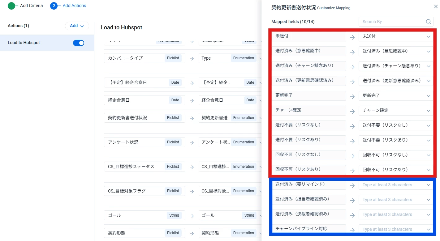 • なお、Hubspot⇒Gainsightは、②も正しく連携されています
