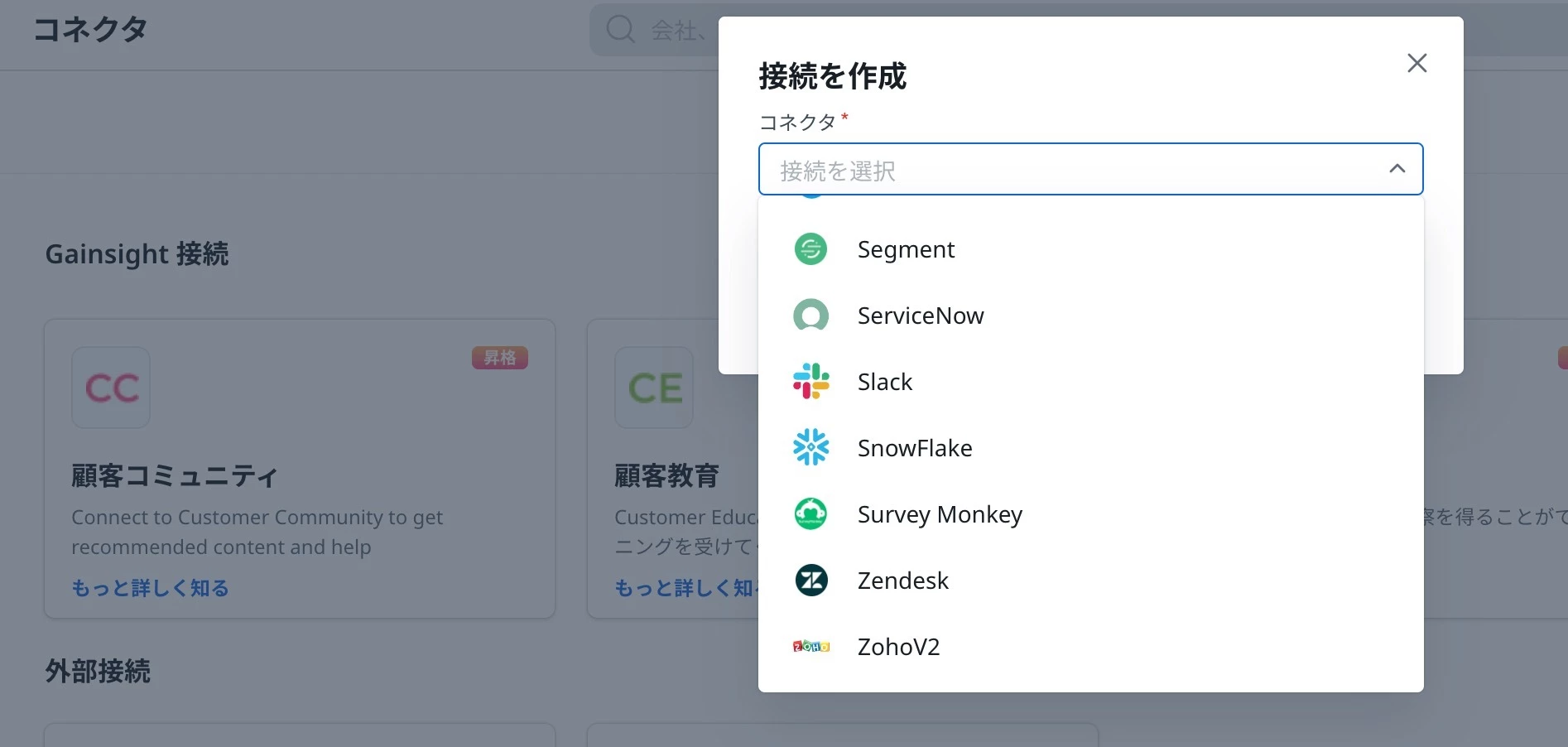 コネクタ2.0の接続の作成から、Slackを選択し、接続を行います。