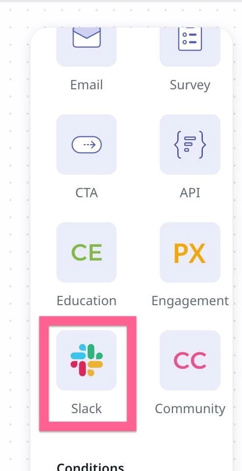 プログラムのアクションとして、右側からSlackのアイコンを真ん中へドラッグ&ドロップします。