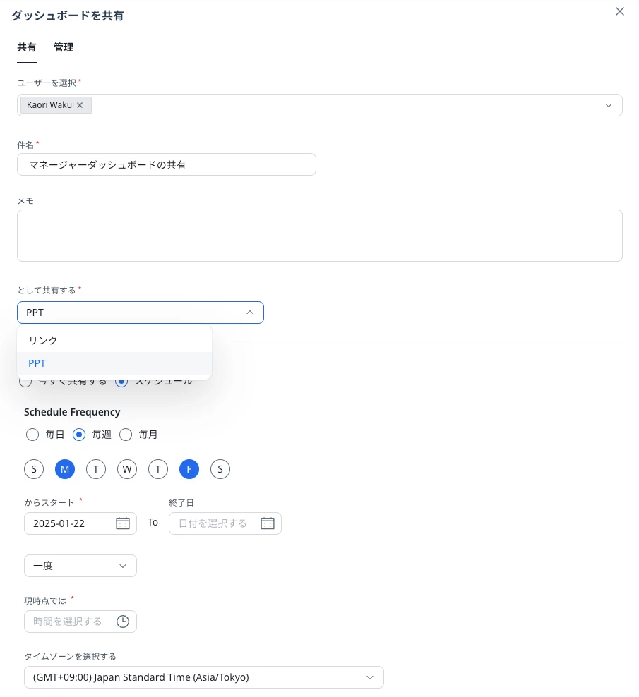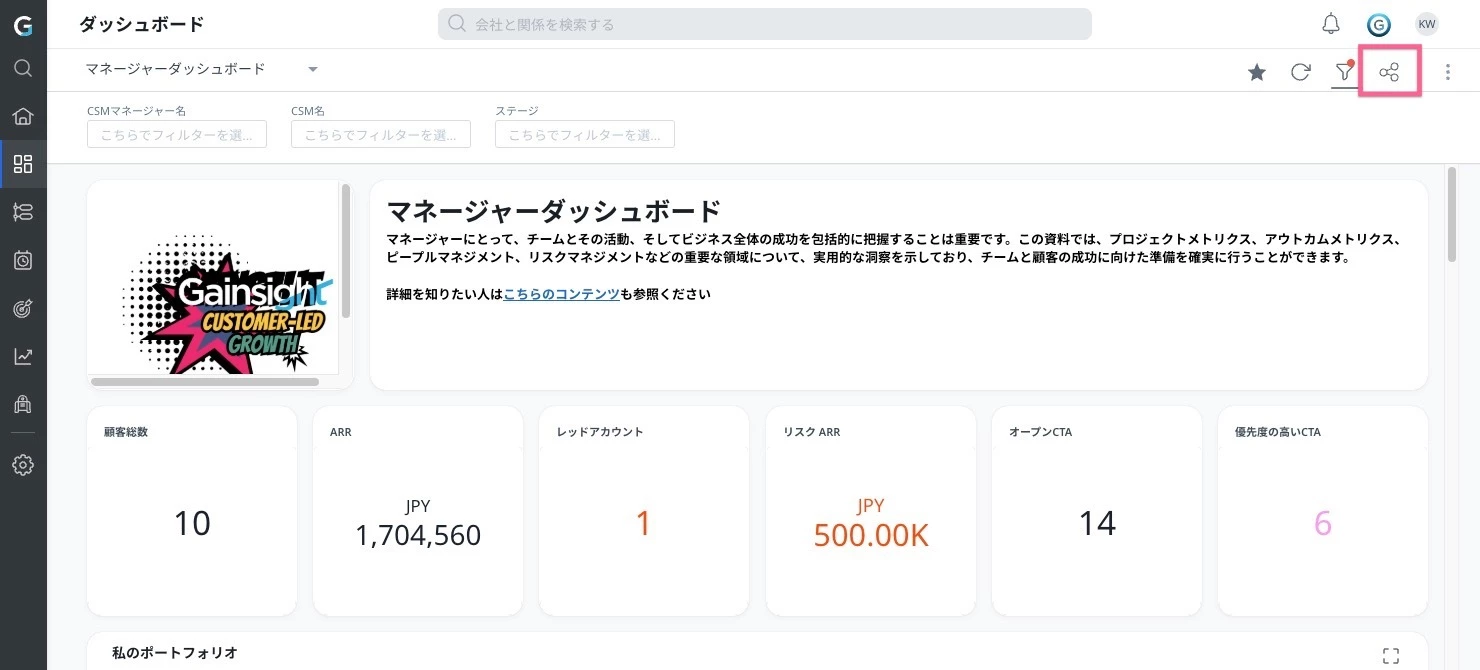 その時に便利なのがレポートやダッシュボードのShare機能。