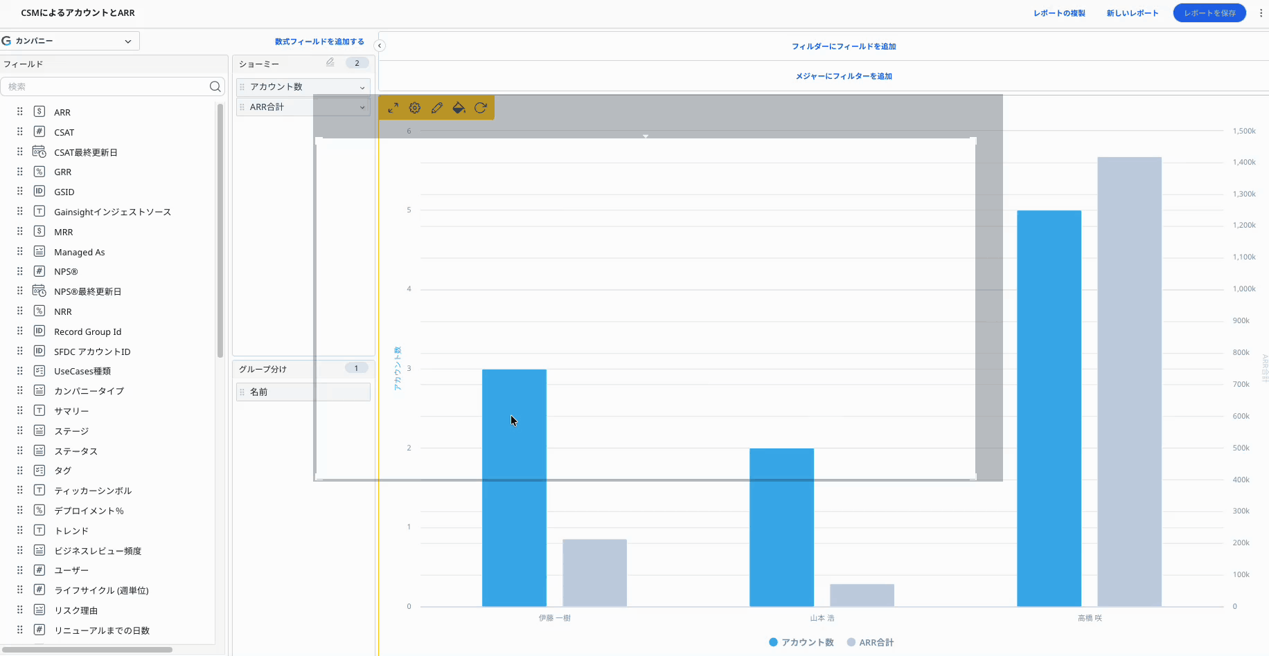 レポートをクリックしたときに表示される情報を変更する方法をご案内します!