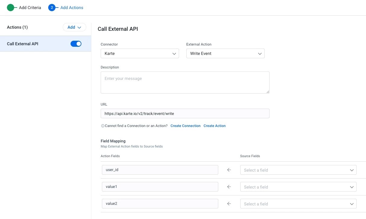 4. KARTEのAPIを呼び出すためのExternal Actionを設定する
