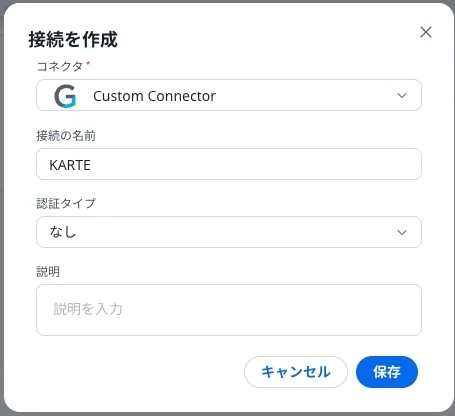 KARTEのAPIを使ってデータを送るためのコネクタを作成します。