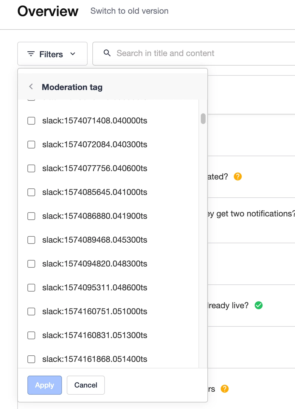 I document the case number in the Team Notes section. I also have the Moderator Labels column enabled so I can see which case has an incident opened at a glance. However, I have to then go into each topic to see the incident number since I can’t add a column for Team Notes.