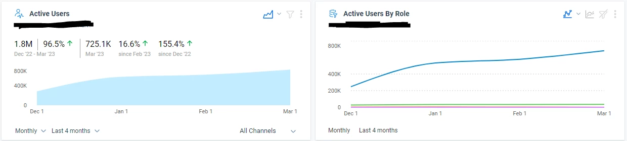 Widgets such as Active Users should have a “Group By” option. Allowing a user to better depict the details within the data.