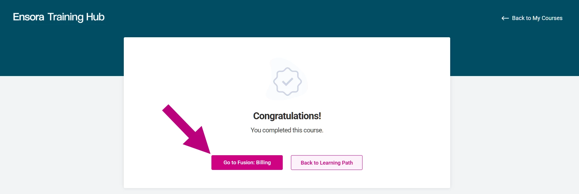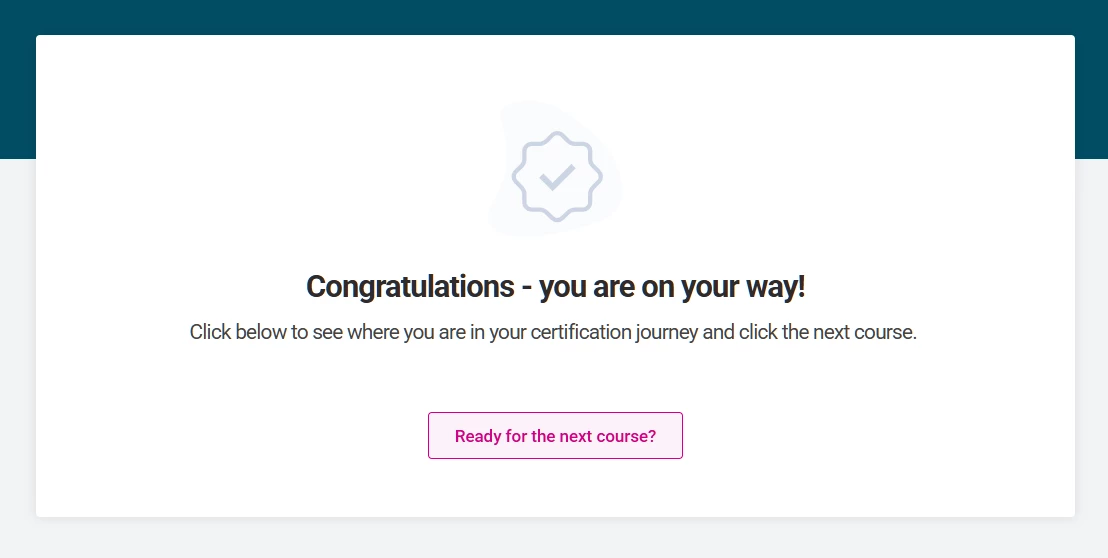- Reinforce the learning journey with clear, actionable next steps. For example, direct learners to notify their manager or CS representative after completing a course.