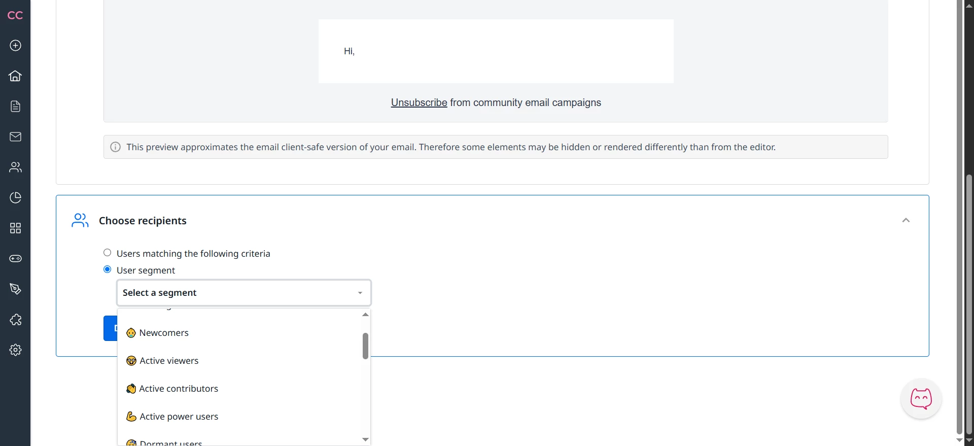 If you're talking about the on-app email campaign feature, you can select recipients based on user segments…