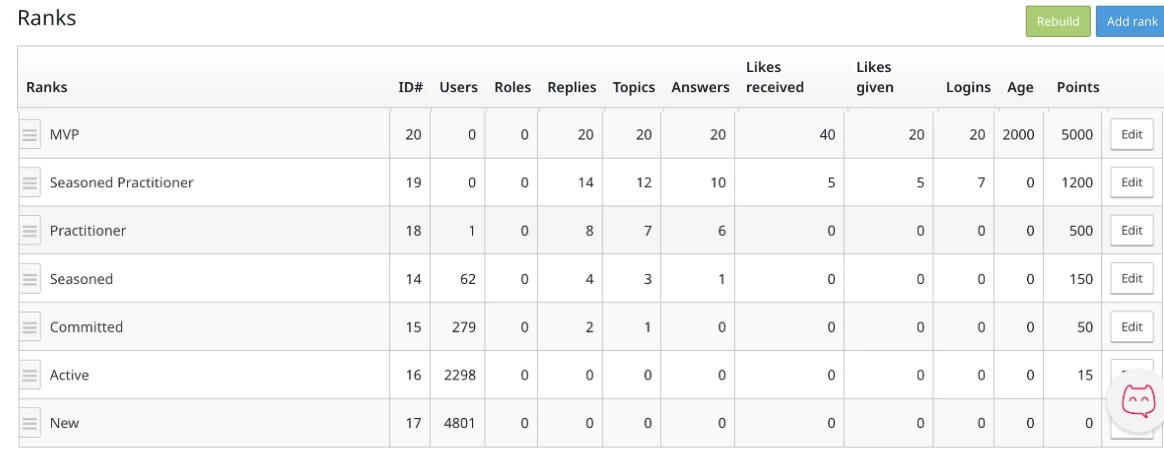 If you’ve recently overhauled your ranks or found a "sweet spot" for point thresholds, I’d love to hear your thoughts or see how you've set yours up!