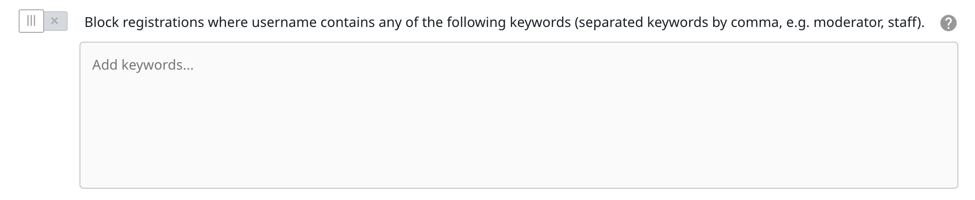 In an effort not to re-invent the wheel, would anyone be willing to share their username block list, configured in the below field? Thank you!