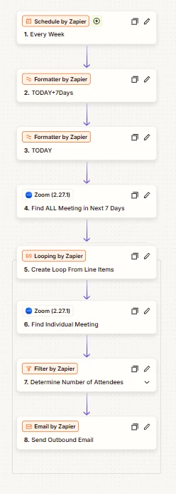 Using Zapier and the Zoom connector I was able to automate a weekly review of upcoming meetings and alert the Community Team if there was poor registration via email.