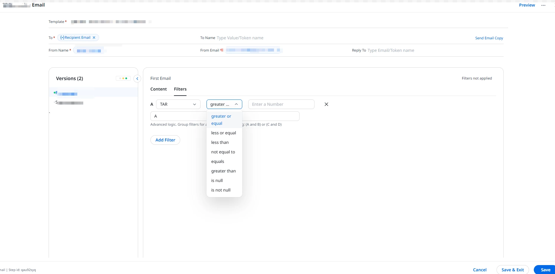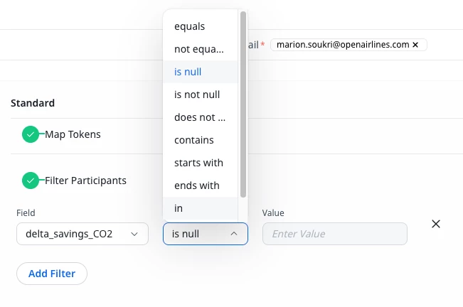 I used to use “greater than “as a parameter to filter the template model that participants in my program would receive.