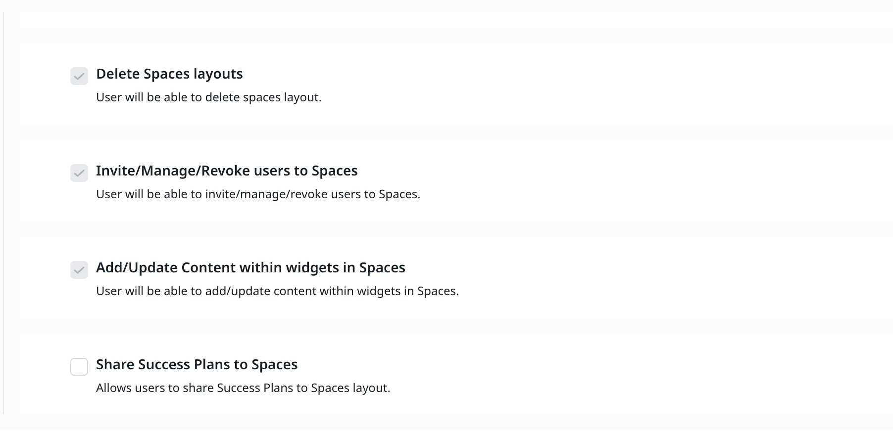 We are starting to use Spaces, and customers should have access to Success Plans and Attachments.