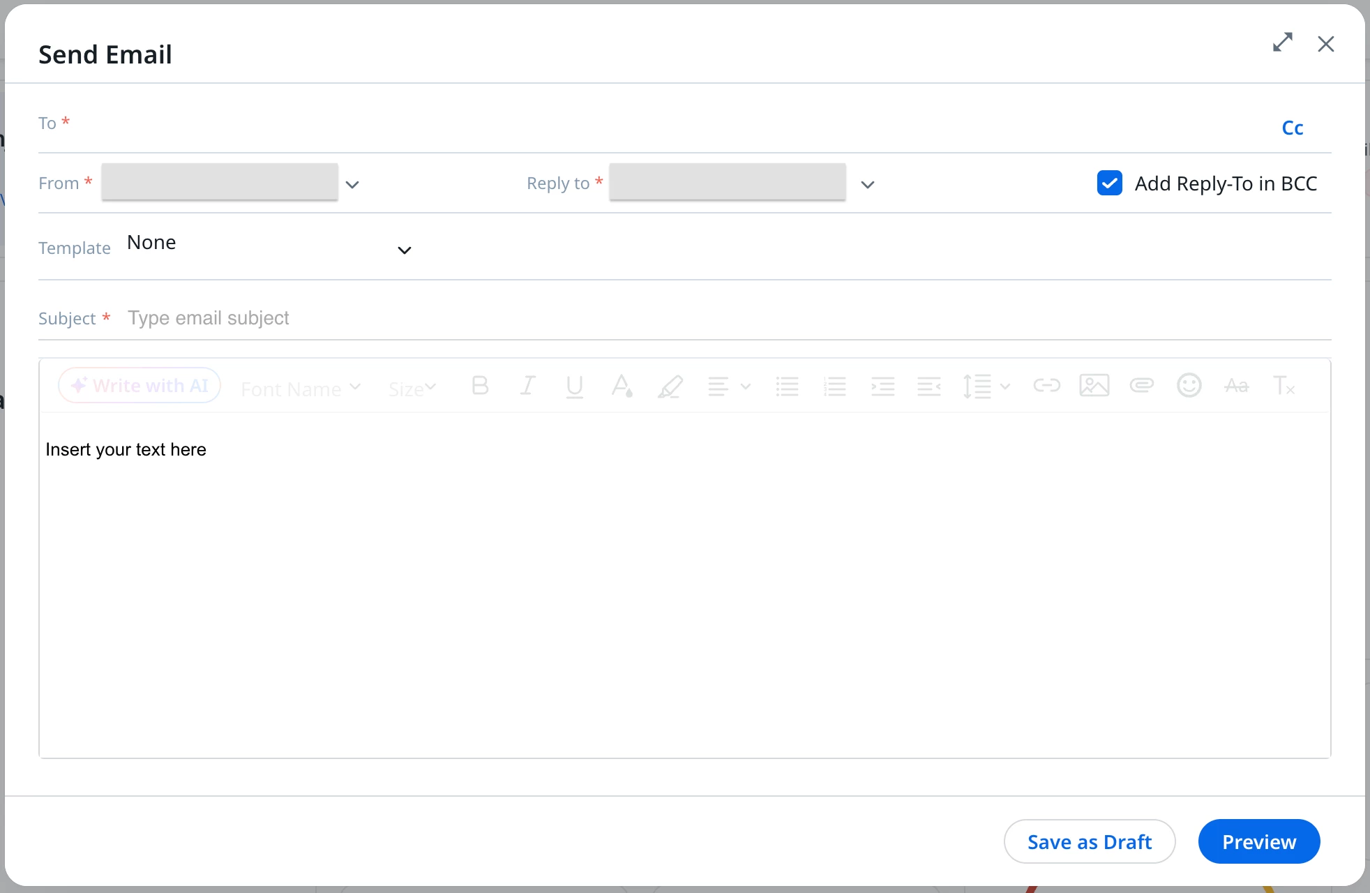 The template is marked as mandatory field in send email of cockpit and P360 email when it is not necessary to include a template while creating a email.