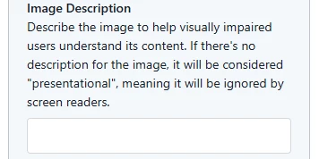 Note: If an image is decorative only (for example, color blocks), leave the alt text field blank.