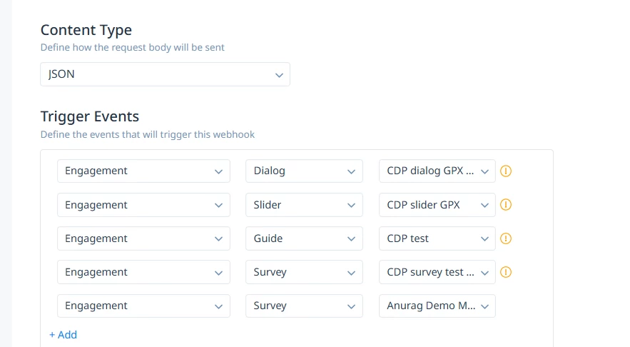 Today, for a Webhook trigger of type Engagement, we select a single engagement per trigger. We would like a capability to select multiple engagements within a single trigger event, in a similar way to how we can select multiple engagements/criteria in Audience logic of an engagement or in the Query Builder.