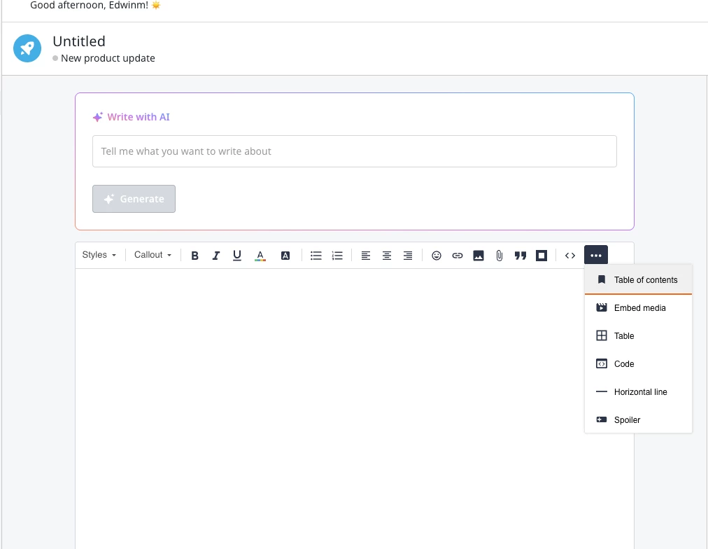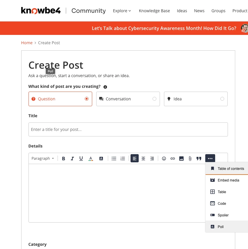 As stated in the title, it seems like the ability to create a poll from the back-end admin view of Gainsight, especially when drafting product updates or articles etc. isn’t available. It would be nice to have the option to do so just like you’d be able to do so from the front-end when creating a new post. Example images shown below: