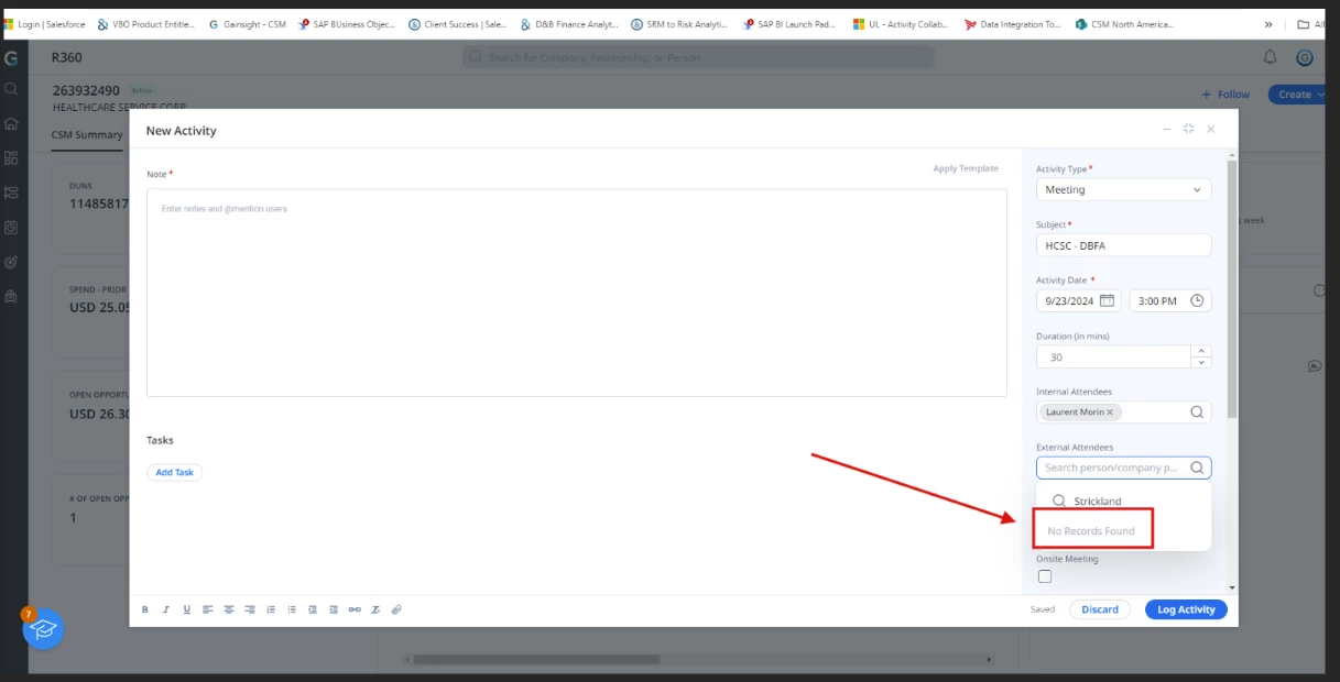 "When typing an external contact and it shows “No Record Found”. It would be helpful to have the ability add a new contact record at the pop out screen. It would save many clicks."