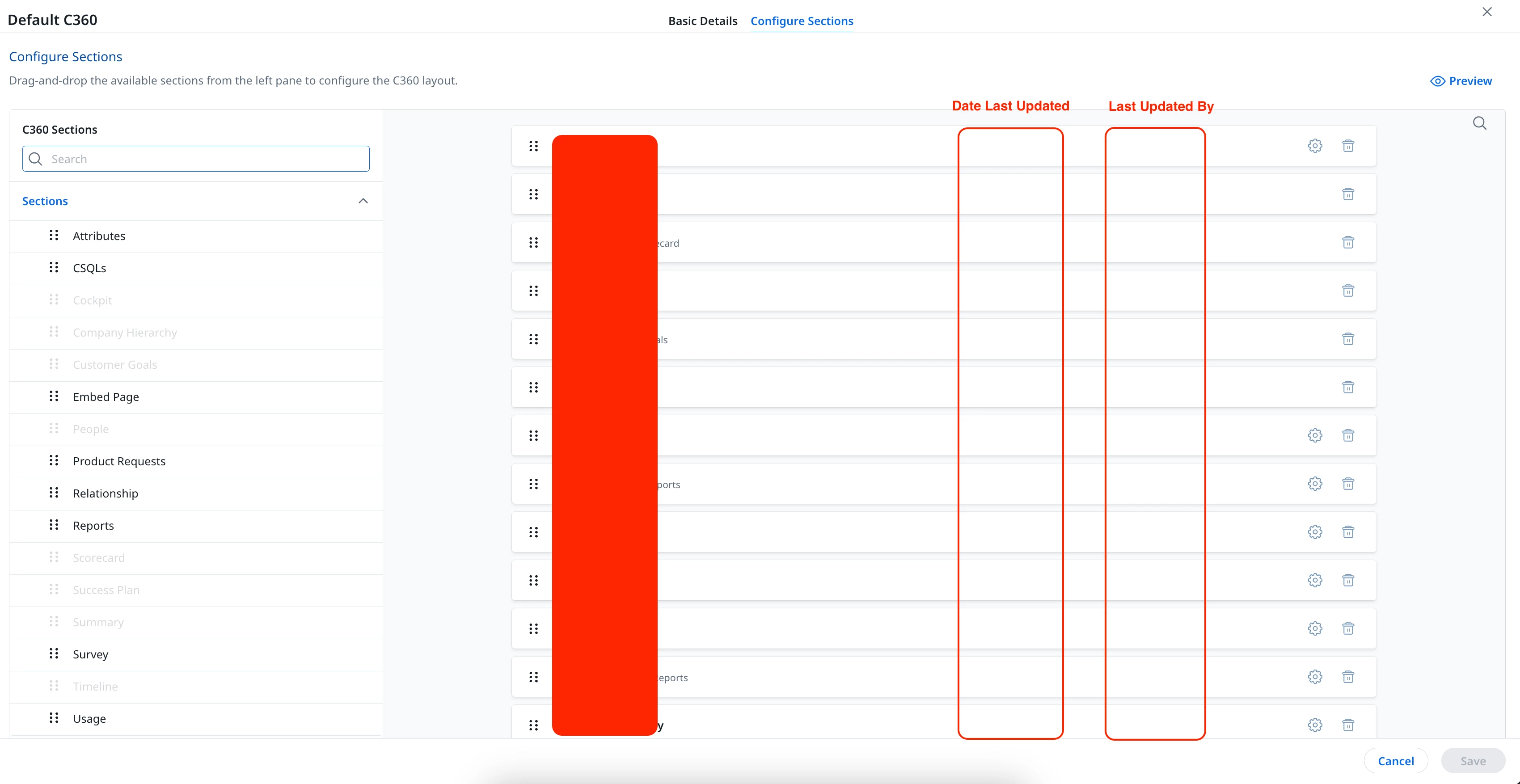 This got me thinking. Could there be a section added to the C360 configuration page that shows the date the admin last updated any of the given C360 sections, including the admin’s name? This would be helpful for C360 config troubleshooting issues with support (so end users can provide support with a general timeframe to reference), plus it would be nice to natively track this in Gainsight. Not to mention, there is plenty of unused space on this page to use up!
