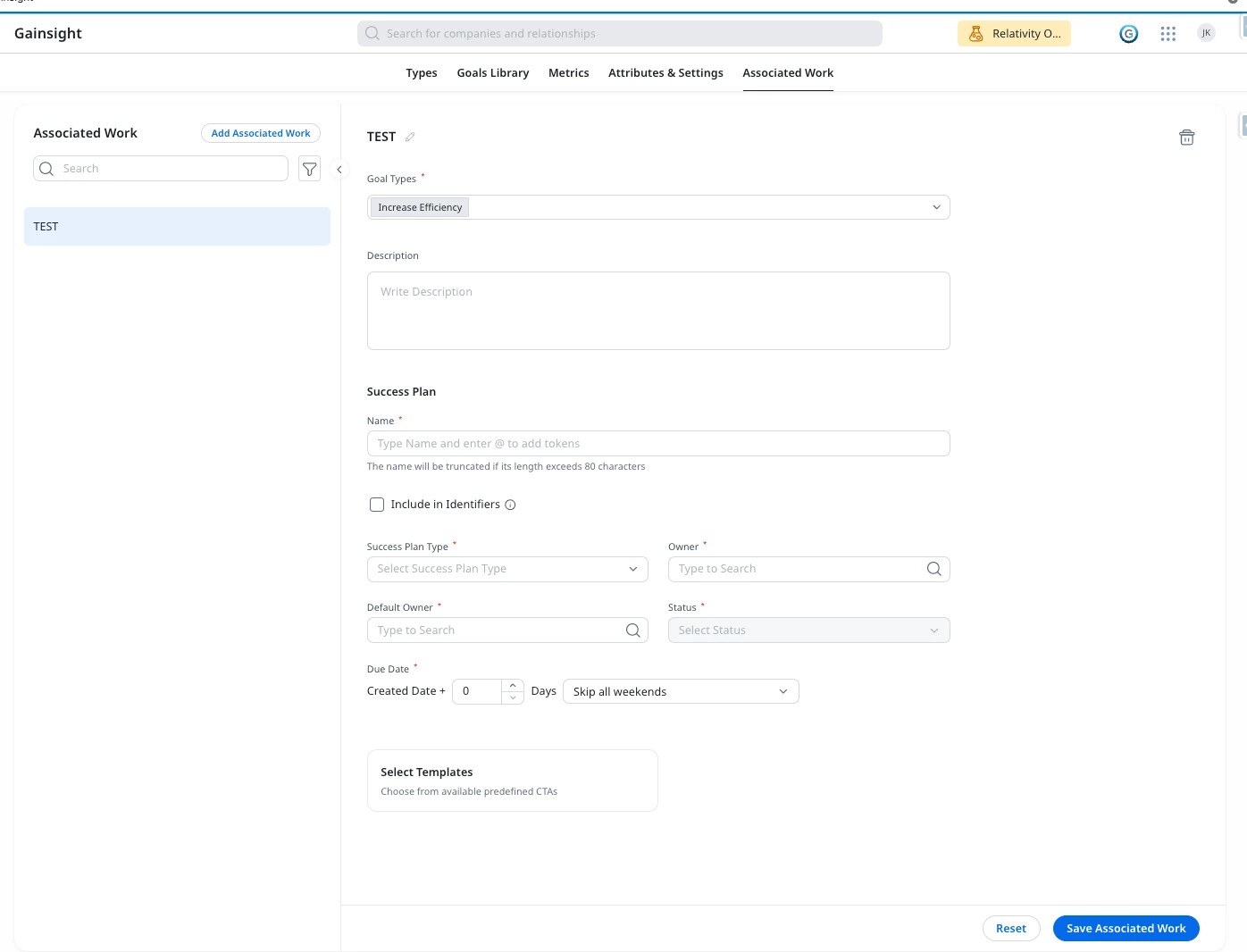 Associated Work in Customer Goals is a good way to templatize the creation of Success Plans with the use of Goals, however it would be even better if it also directly supported associating Playbooks because you may not need a whole Success Plan to support a Goal, just a couple of key CTAs.