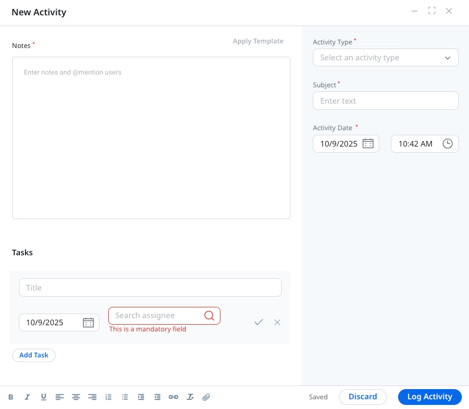 When logging notes in an activity such as notes for a cadence call or business review, it would be helpful if when creating a task for a follow up item there was an extra space to add a description instead of just the single line of the task title.