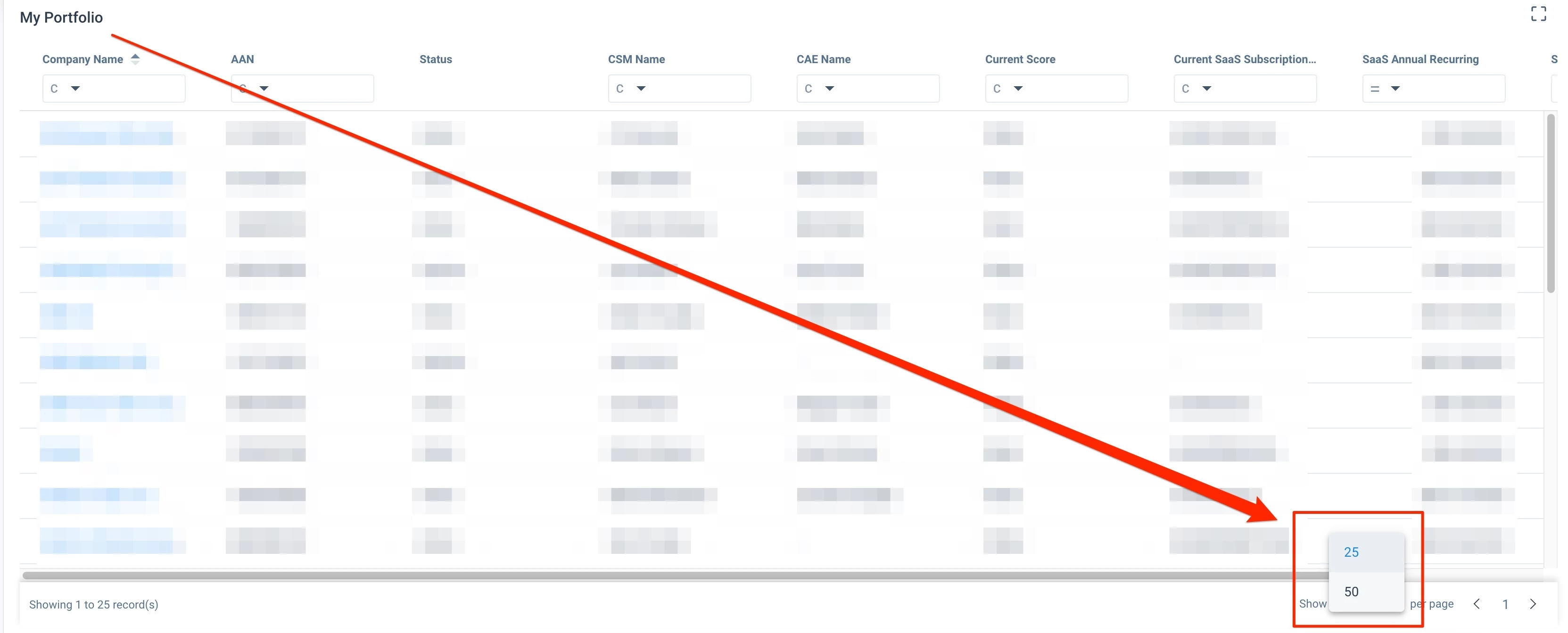 Currently, the My Portfolio report allows users to show 25 or 50 records at once. This report is limited to displaying 50 records per page. For users with more than 50 customers/accounts, this can be tedious to scroll through. It would be helpful if users could select to display up to 200 records in My Portfolio, like we are currently able to for all