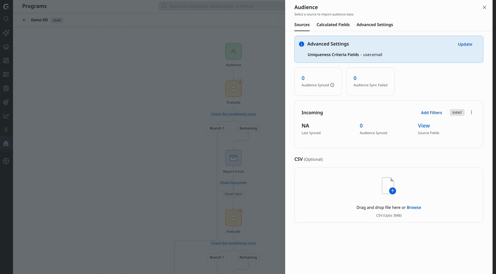 Feature Parity Issue: Old JO allows to set the datatype in the ‘Mapping Participant Sources’ section and set Event strings to emails -- this does not appear to be available in New Programs.