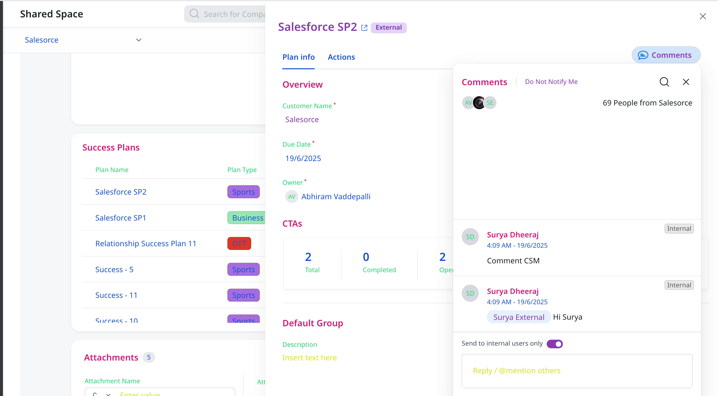 The Comments widget/function in Success Plans would be a fantastic addition to Spaces. Something to allow the back and forth exchange of information and comments (with a running history) from directly within the Spaces portal.