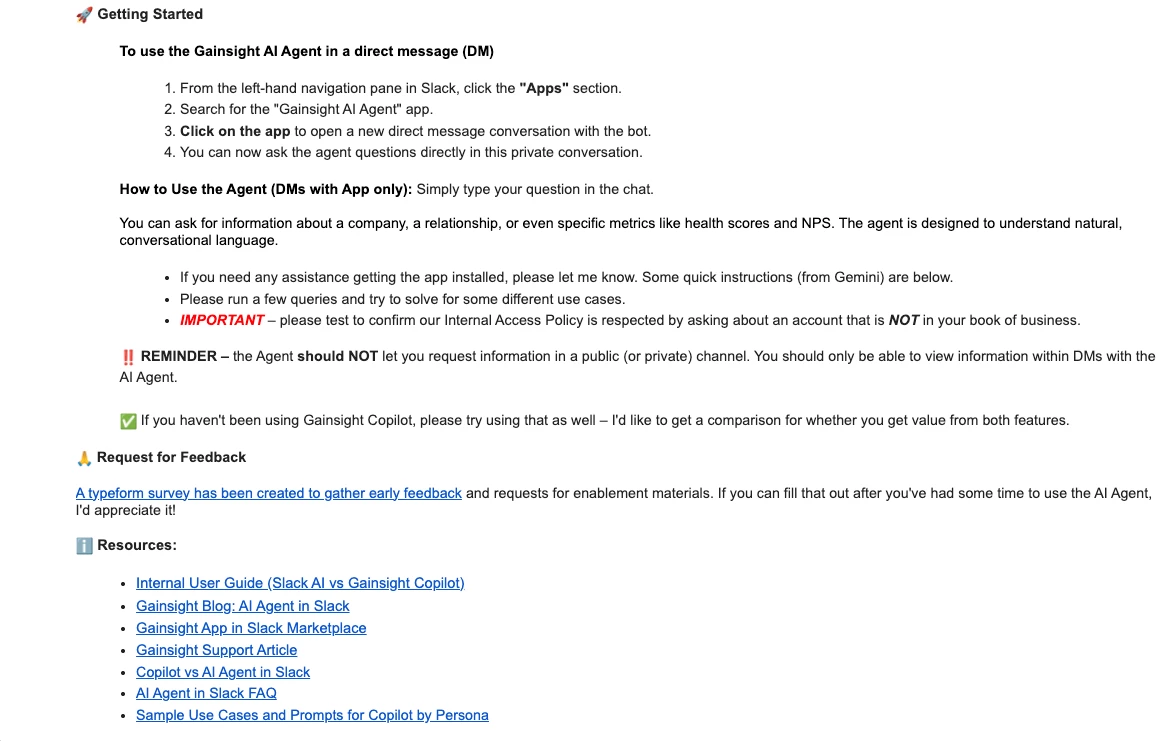 This would also make it easier for us to create our own enablement, focused on the features/use cases that matter most to our end users (and to different subsets of our users). Our users aren’t looking for a litany of links to page through – they want the key info pulled into a quick, high level doc and/or video overview, with the ability to go to the sources if needed.