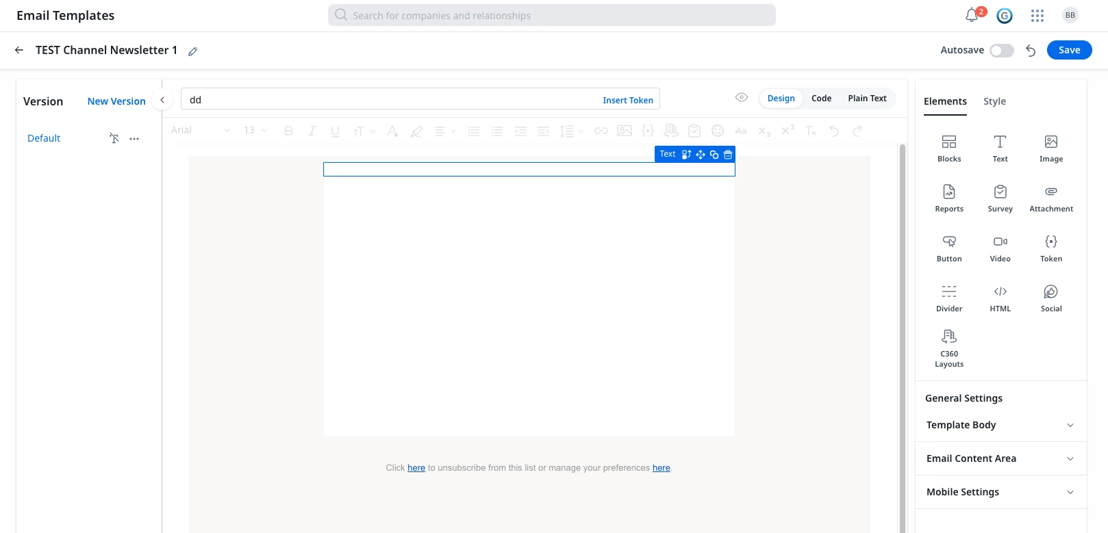 Notice there is an additional “elements” header, and you have multiple ways to view the email itself. You can make much better looking emails in this version.