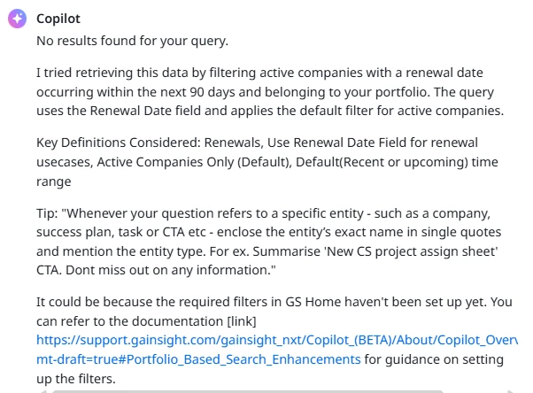 As example, right now I have a filter applied for the renewal date = date next year, so when I ask for my upcoming renewals, even though there is one account active and due at the end of the month, Copilot says that there isn't any: