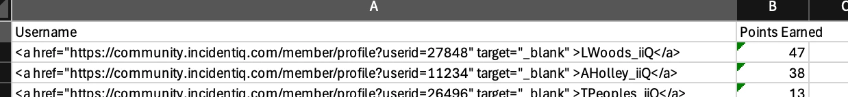 Why is User Points (Points earned) and Positive content helpfulness votes not included as Data when exporting to a CSV under any of the export type? It should ideally have been available with User / Topics but it isn’t.