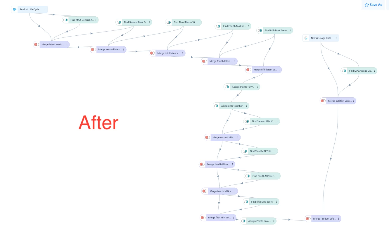 Also you can see in this screenshot what I had to do just to rank 5 dates and 5 numbers. If there was a ranking formula, I think I could cut out about 80% of these transformations and merges.