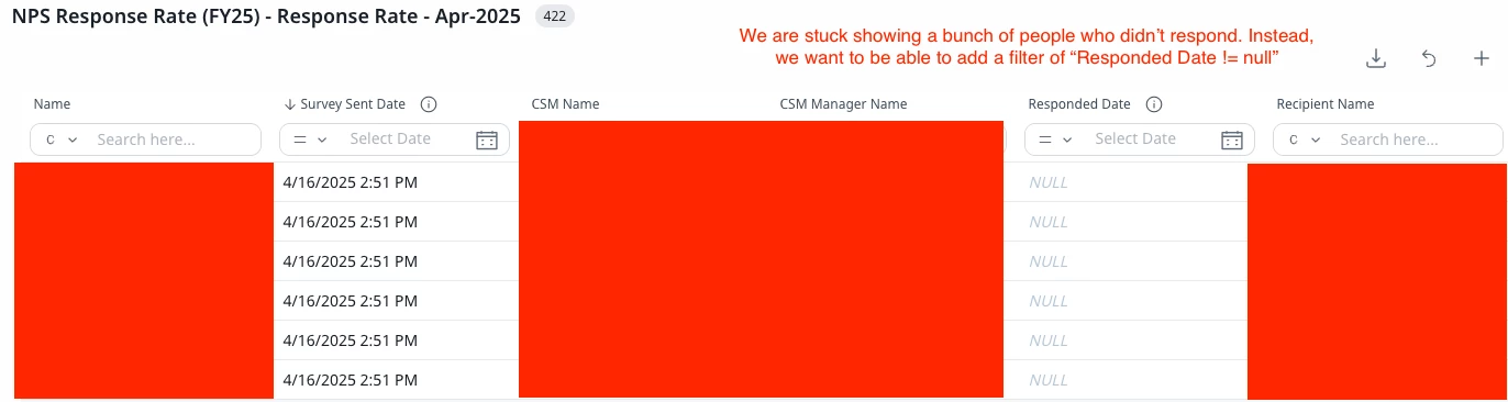 I want to have the ability to have drilldowns reflect the filters I have used to generate reports. For example, if I have a column line chart showing opened vs sent emails by month I want to be able to click into a section (such as COUNT of opened) and be able to only see the participants that fit that criteria. As it exists today, drilldowns show all participants regardless of the filter used to generate the report.