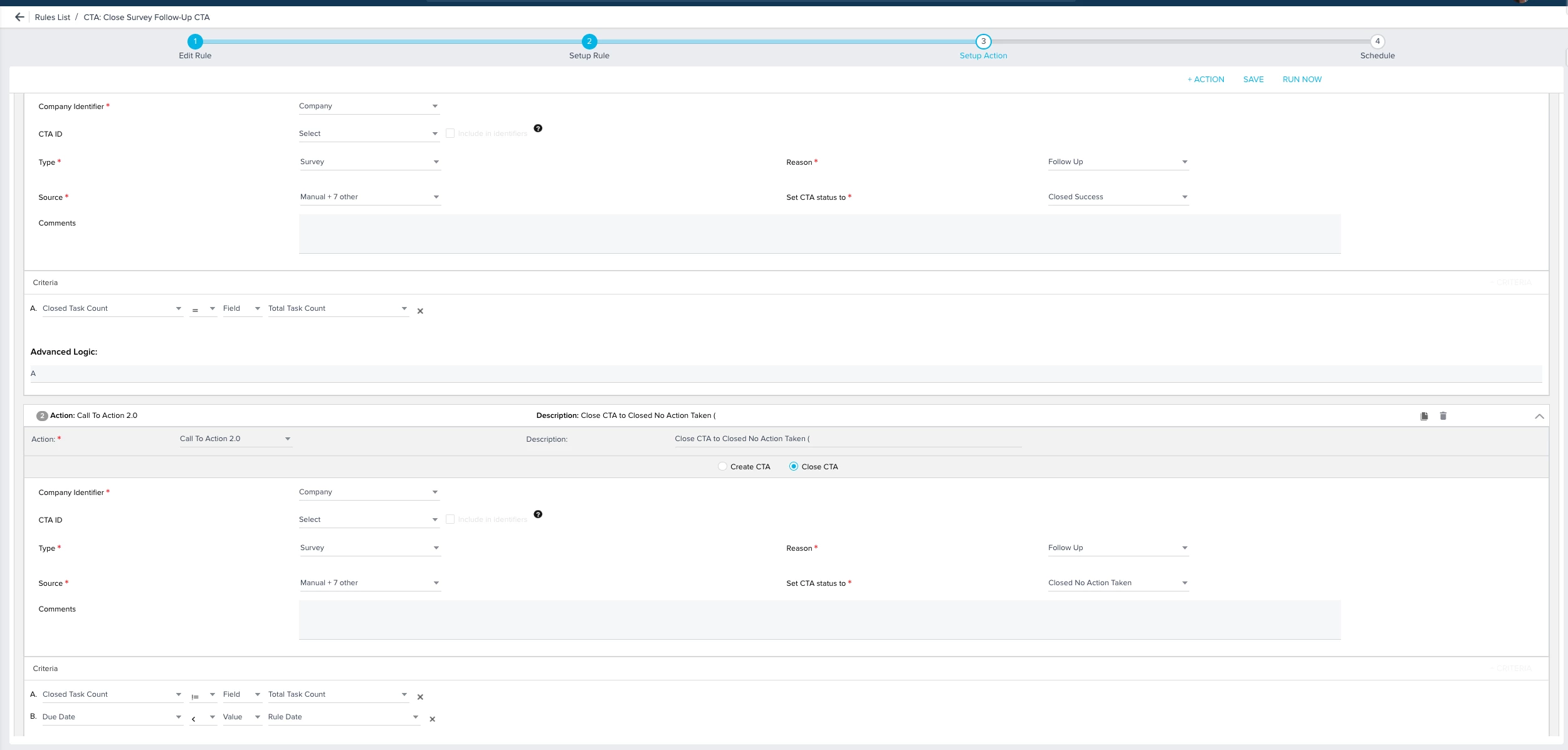 We have CTA rules where we want to close the CTA and set the status to different statuses based on certain criteria.