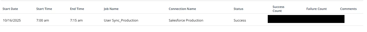 When investigating why a specific user was missing on my end, I checked the execution time of the relevant Job (Salesforce connector).