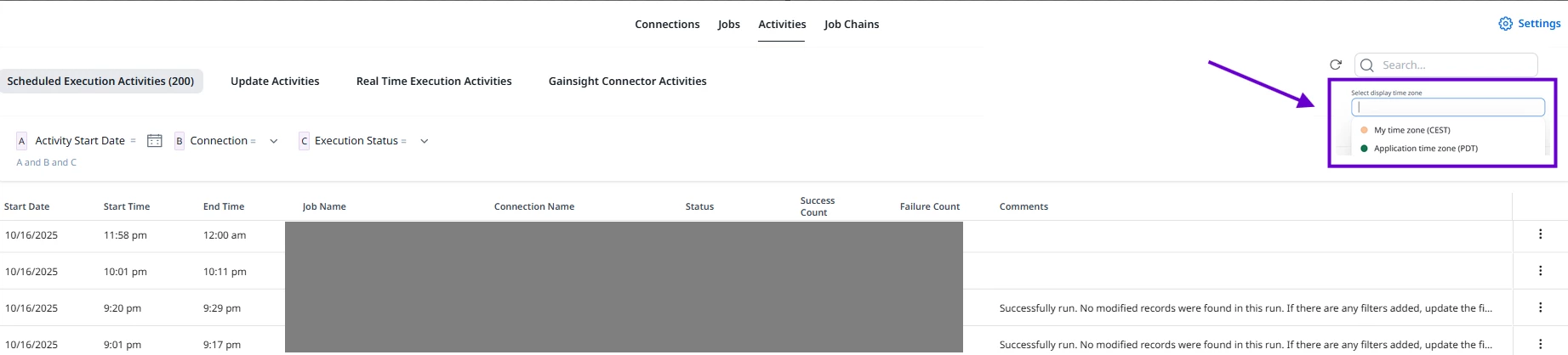 The root cause of this confusion is that I spend most of my time in the Rules Engine, where the execution history is displayed in my local time zone. When I switch to Connectors 2.0, the time zone shifts to the application's default. This broken experience forces users to perform "mental gymnastics" and consult external converters just to confirm the expected run time.