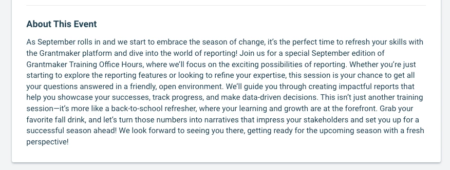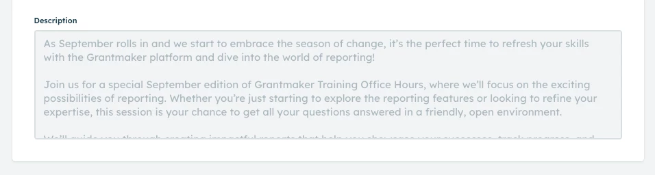 Events (Instructor Led Training): The description that comes over from Zoom follows the format, in terms of spacing, into CE. But the display of the text in the academy is just one block of text. It is not easy on the eyes. I would suggest either display as it comes over, or even allow for overriding in CE to customize the text fully.
