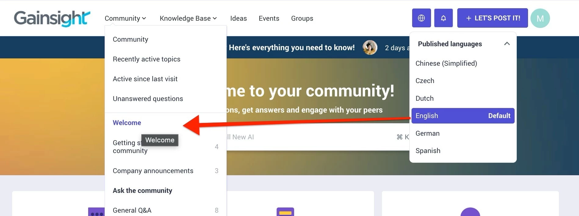 A localized Community category helps region-specific users get started and navigate the community platform effectively. It enables community managers to offer a seamless experience tailored to diverse community users.