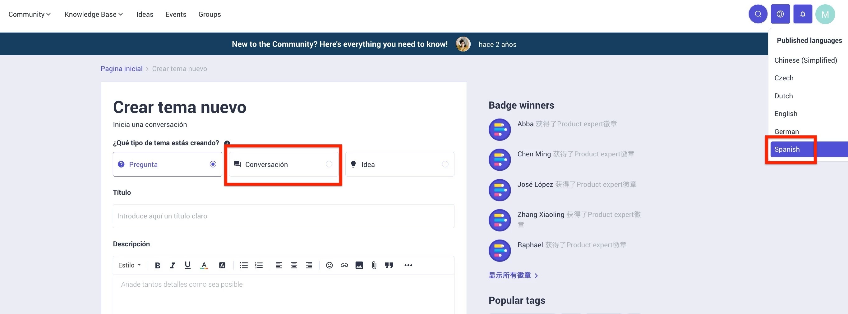 This article guides community managers, administrators, and end users in creating localized topics, such as articles, questions, and conversations.