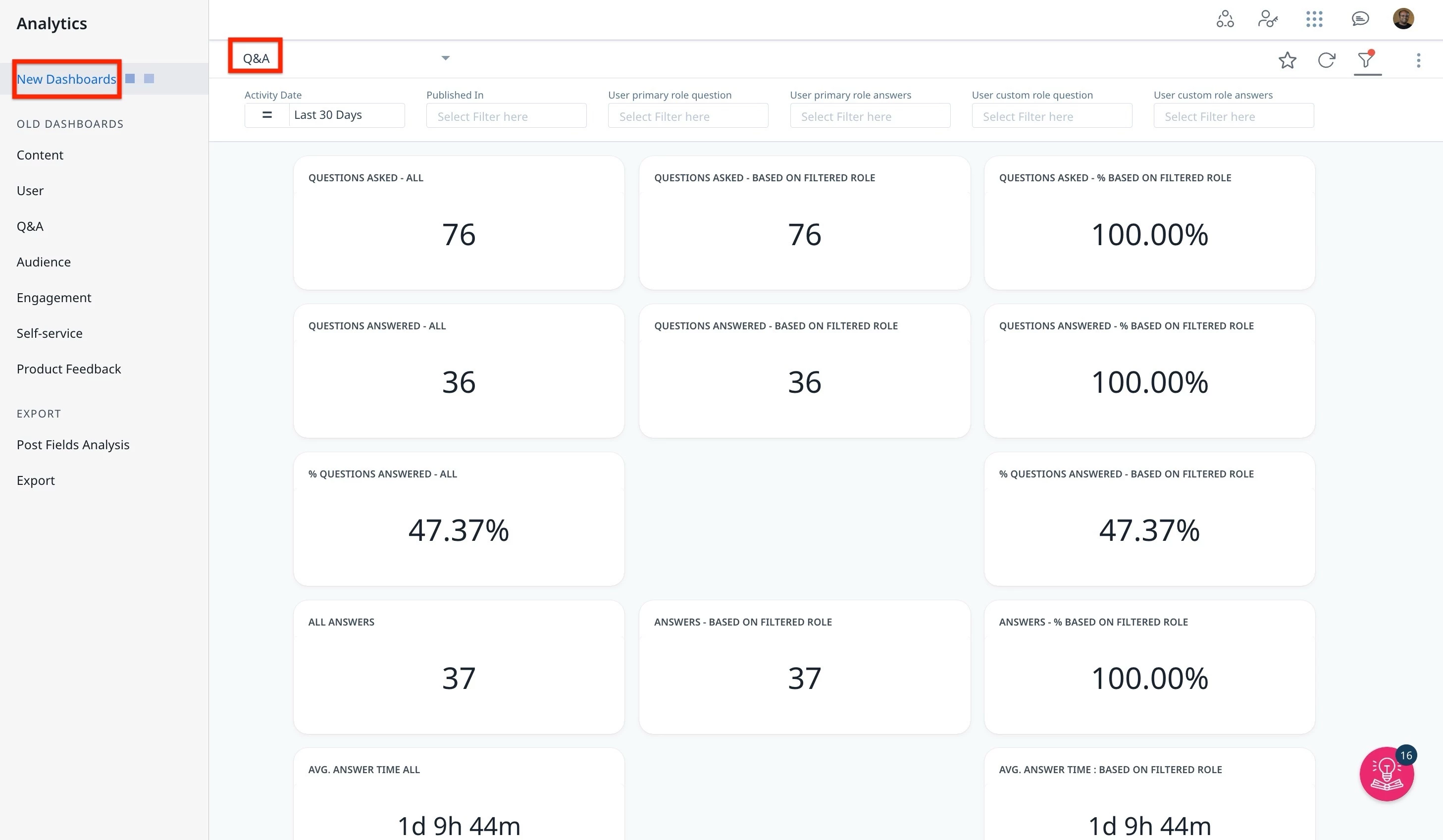 The Q&A dashboard is an out-of-the-box (OOB) dashboard that can be viewed from the Analytics page.