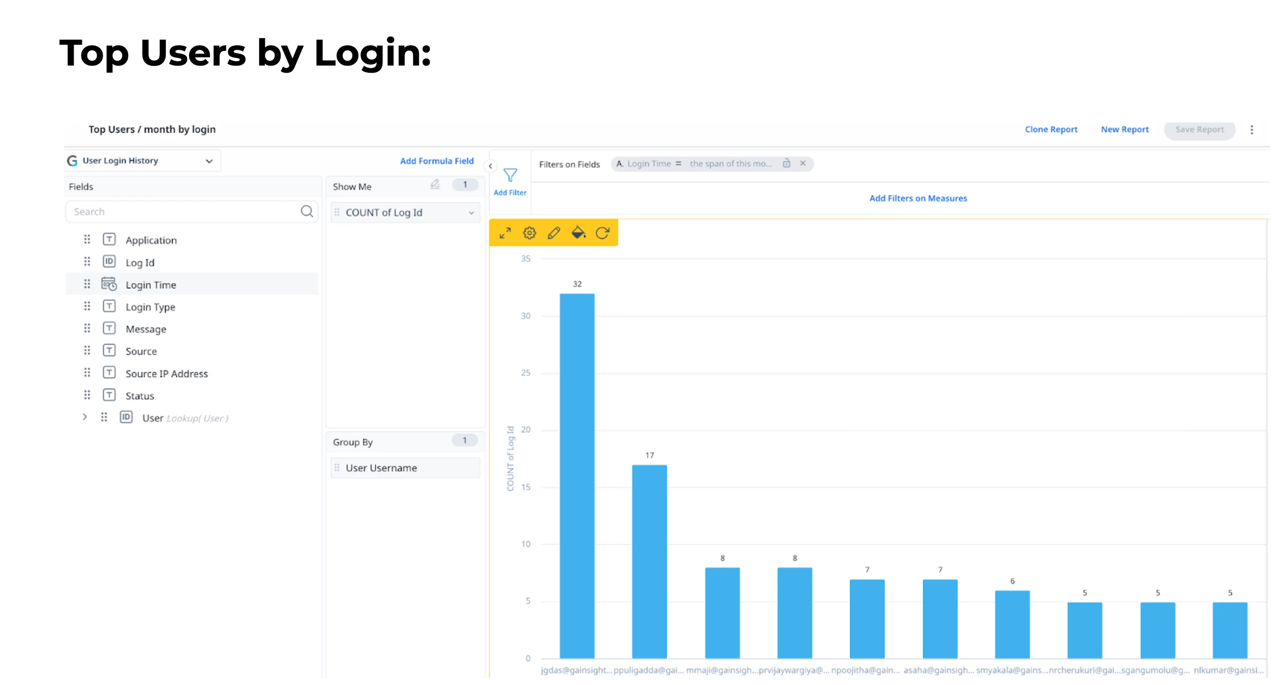Access the Gainsight User object in your data system to view detailed login records. - Build Custom Reports: