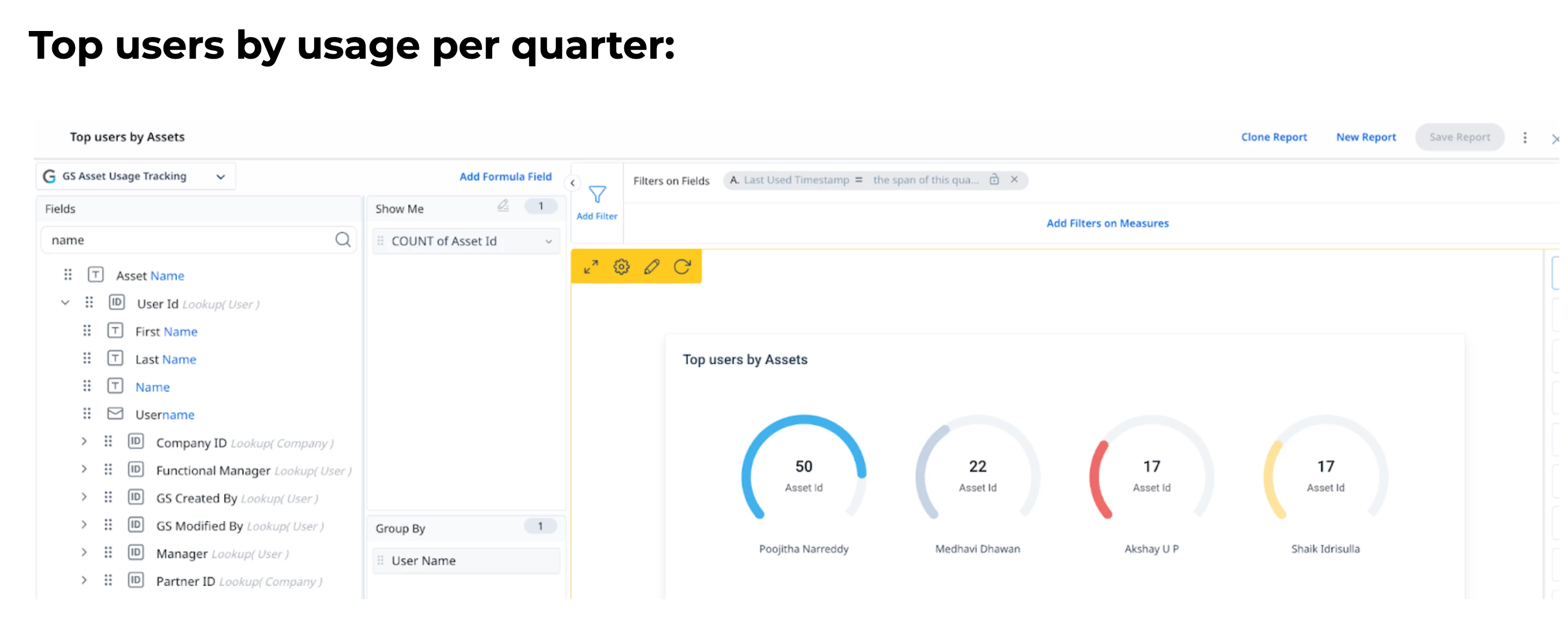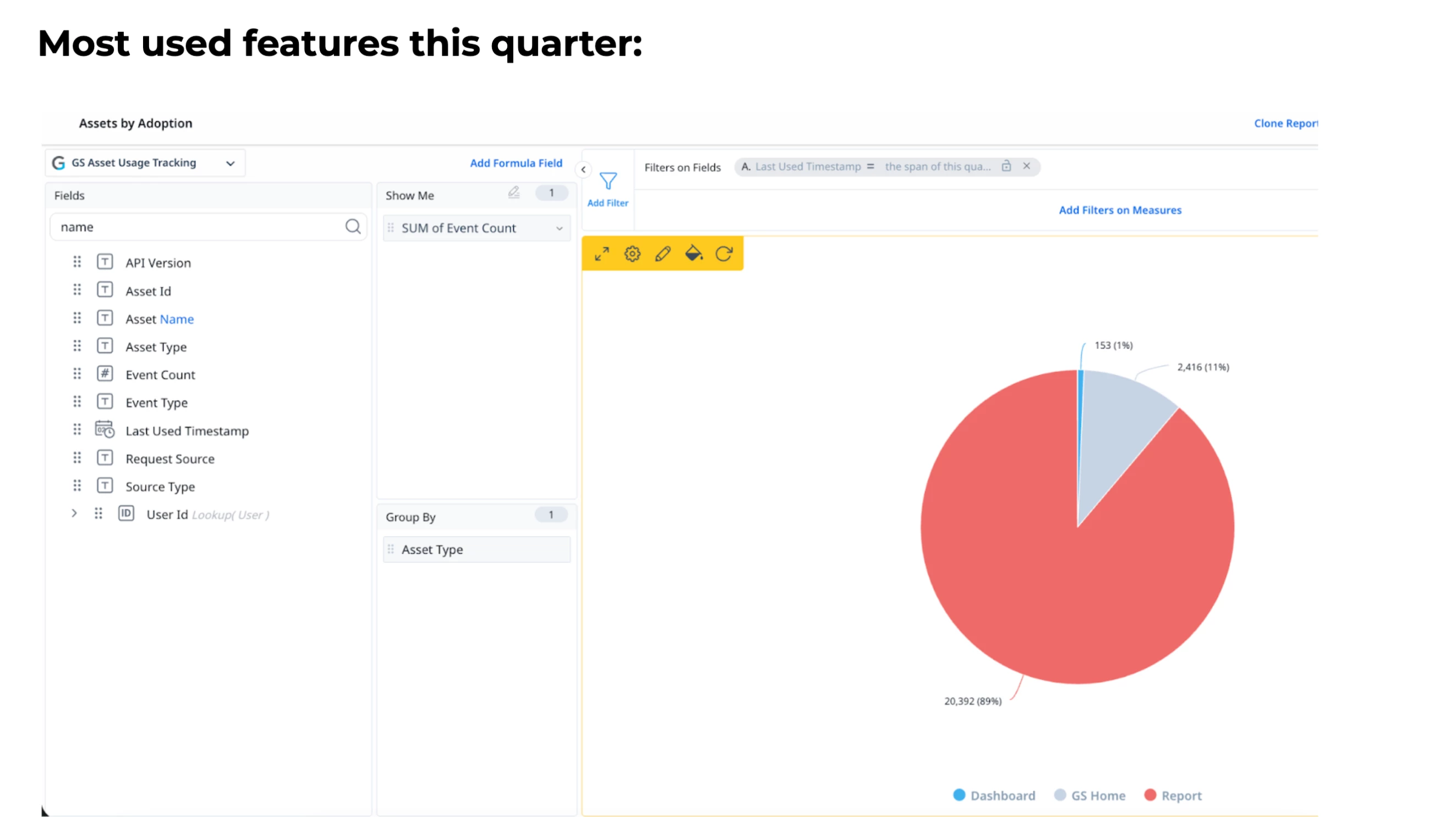GS Asset Usage Tracking provides asset-level insights into how often specific features, reports, cockpits, etc. are used. This helps product and CS teams understand which assets deliver the most value and where adoption efforts can be improved.