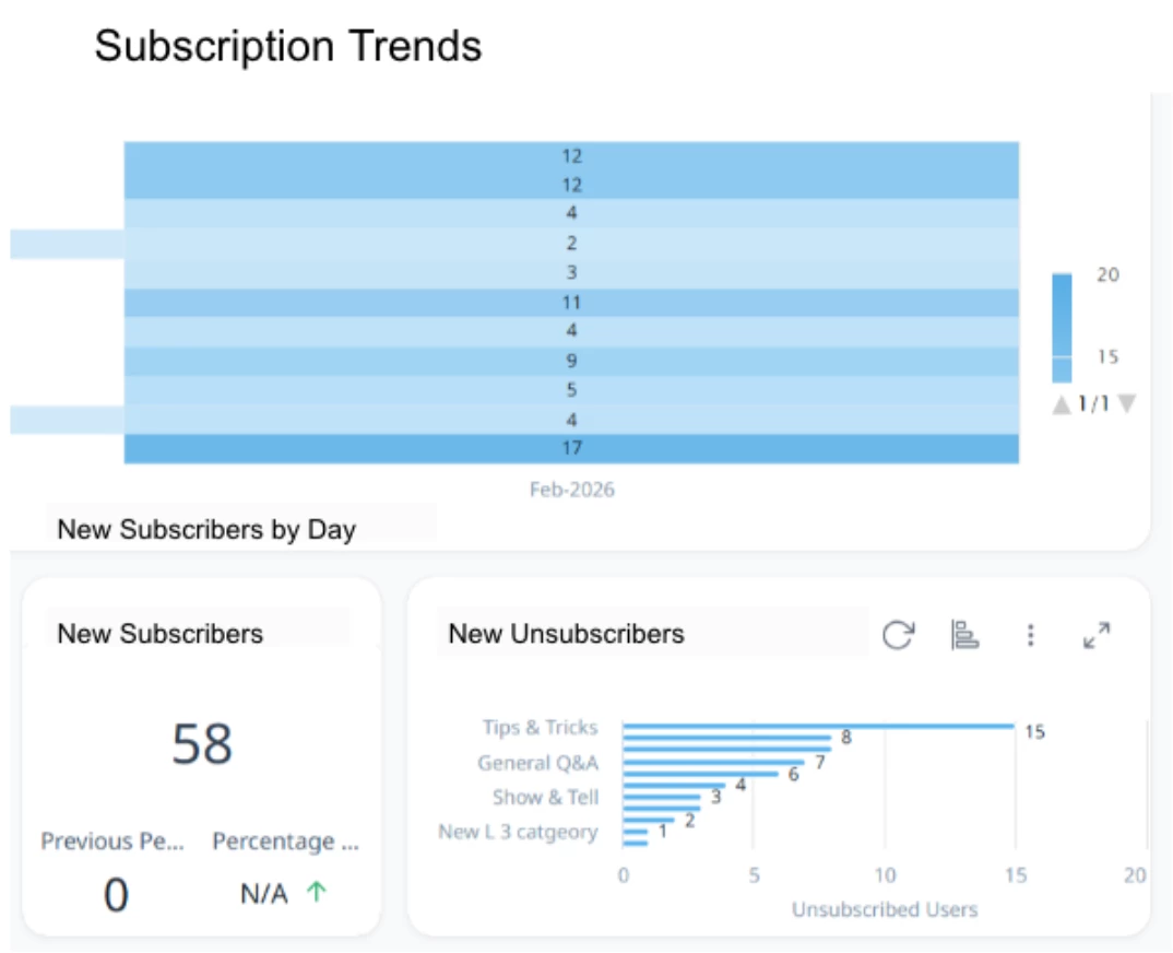 Track how subscriptions evolve over time and uncover engagement momentum across your Community.