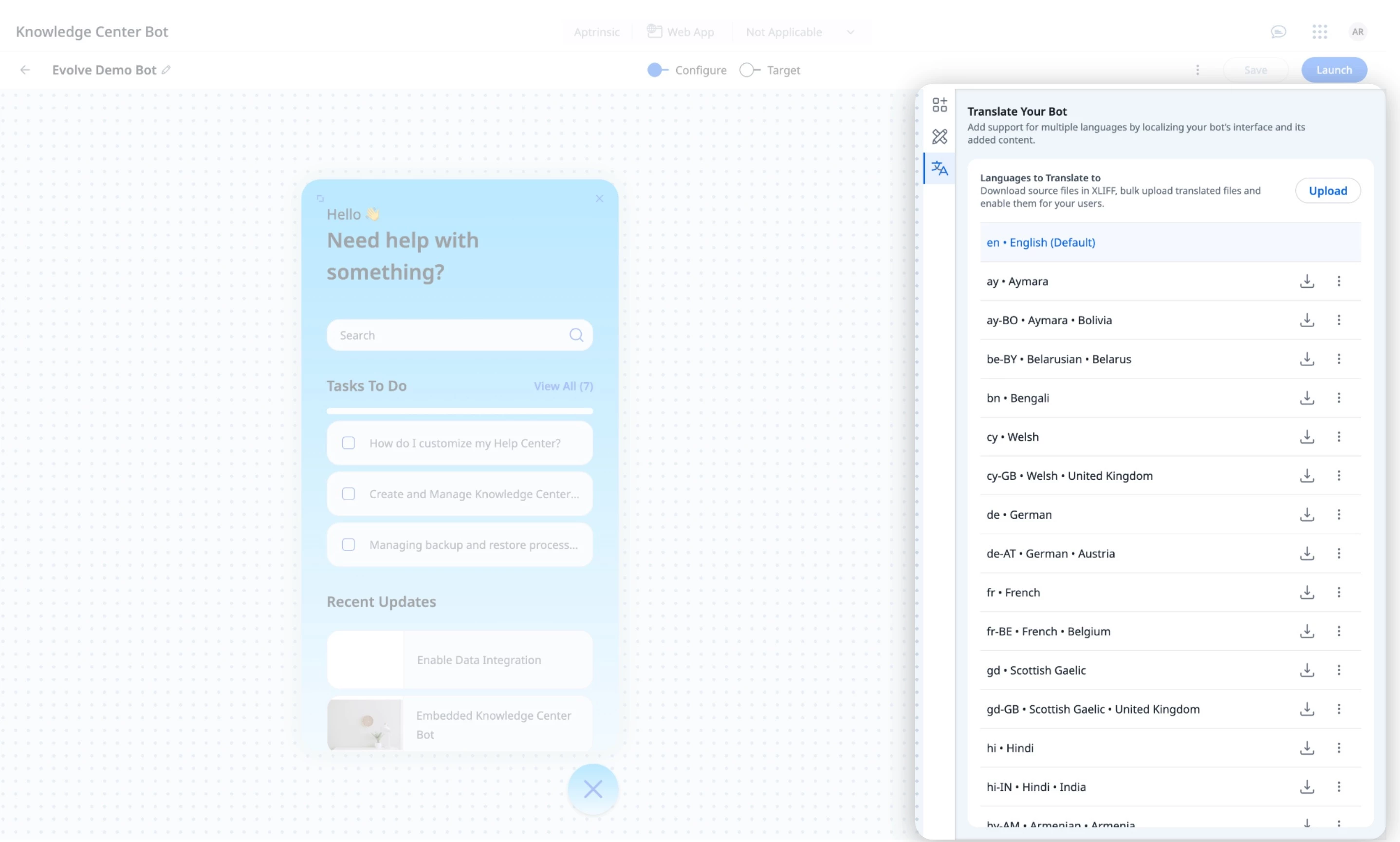 We’ve added full localization support to the redesigned Knowledge Center Bot, enabling you to deliver a consistent, localized in-app experience directly from the bot interface. All content, including articles, web links, and JavaScript functions can now be translated and managed seamlessly.
