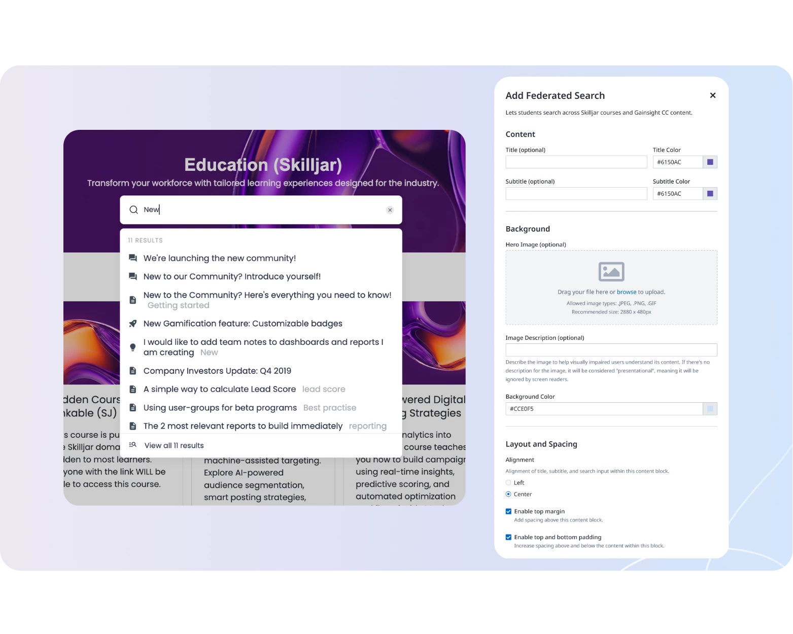 - A new search bar on your Skilljar Academy surfaces both Skilljar and Community results