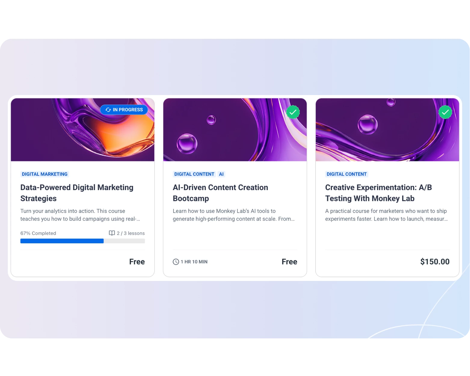 - Filter by tags, course status, duration, and more