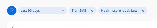 フィルタ例:Tier、ヘルススコア、ライフサイクルイベント、インサイト、等々
