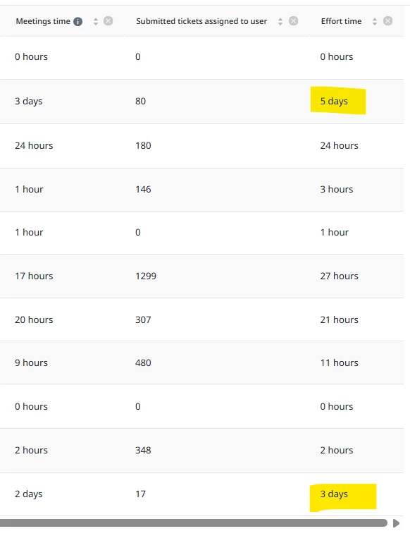 In this particular case, I’ve filtered to a time frame of 90 days; and while some of the team shows “5 days” of effort, others show just a few hours.