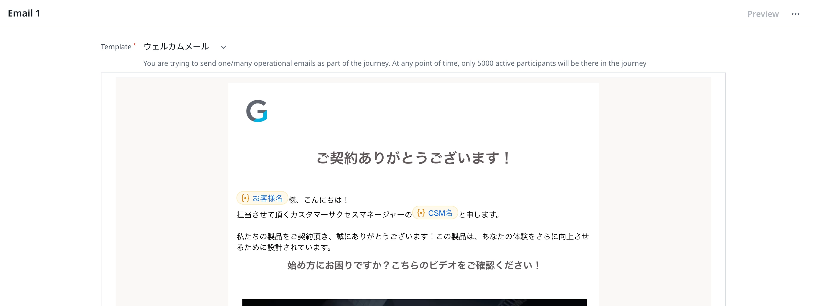 各メールテンプレートやCTAなどのアクションでは、埋め込み文字や実行するのに最低限設定が必要な箇所があります。